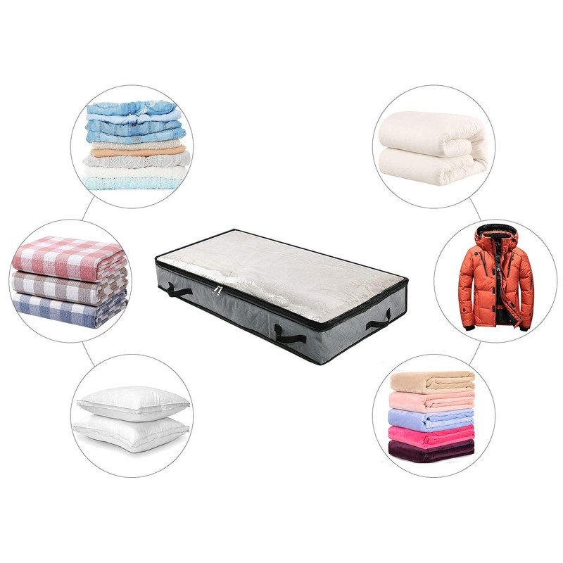CONSIDERATE DESIGN: 4 DURABLE HANDLES - 2 front and 2 side reinforced handles make it easy and convenient for you to carry and pull out from under the bed. This storage bag has double 5# Stainless Steel zipper,pull smooths and no stuck, it can be used more than 1000 times (not like most cheap bags' zipper just use some times). the ultra thick top transparent window let you find what inside quickly,save more time.