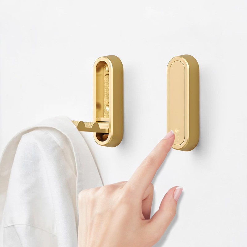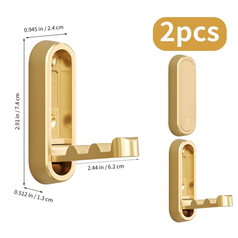 2PCS Foldable Wall Hooks, Heavy Duty Zinc Alloy Folding Coat Hooks for Hanging Coats, Towels, and Clothes, Durable Metal Hangers for Bathroom and Closet (Gold)