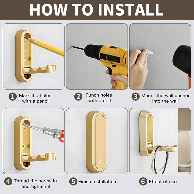 - Install: Folding wall hook comes with all necessary hardware for installation (screws and expansion anchors), requiring no complicated tools and allowing for easy setup within minutes.