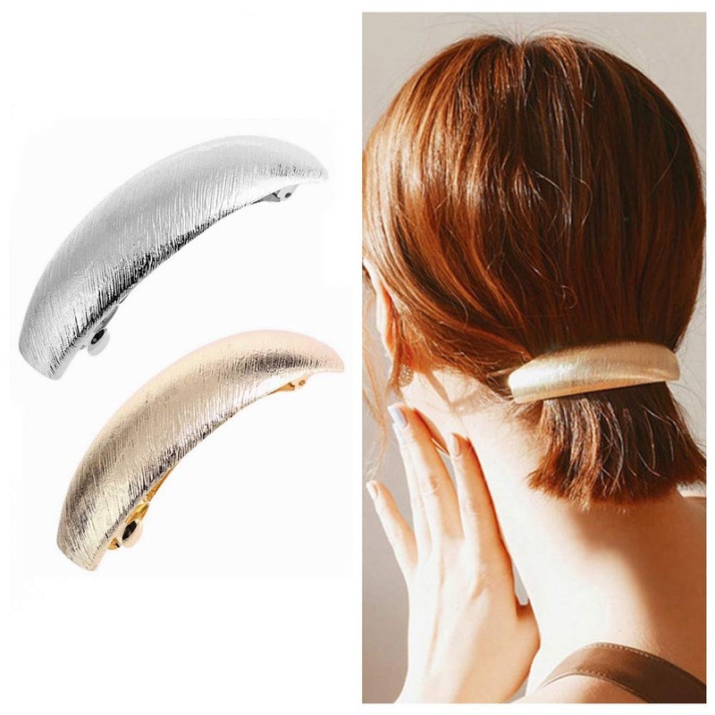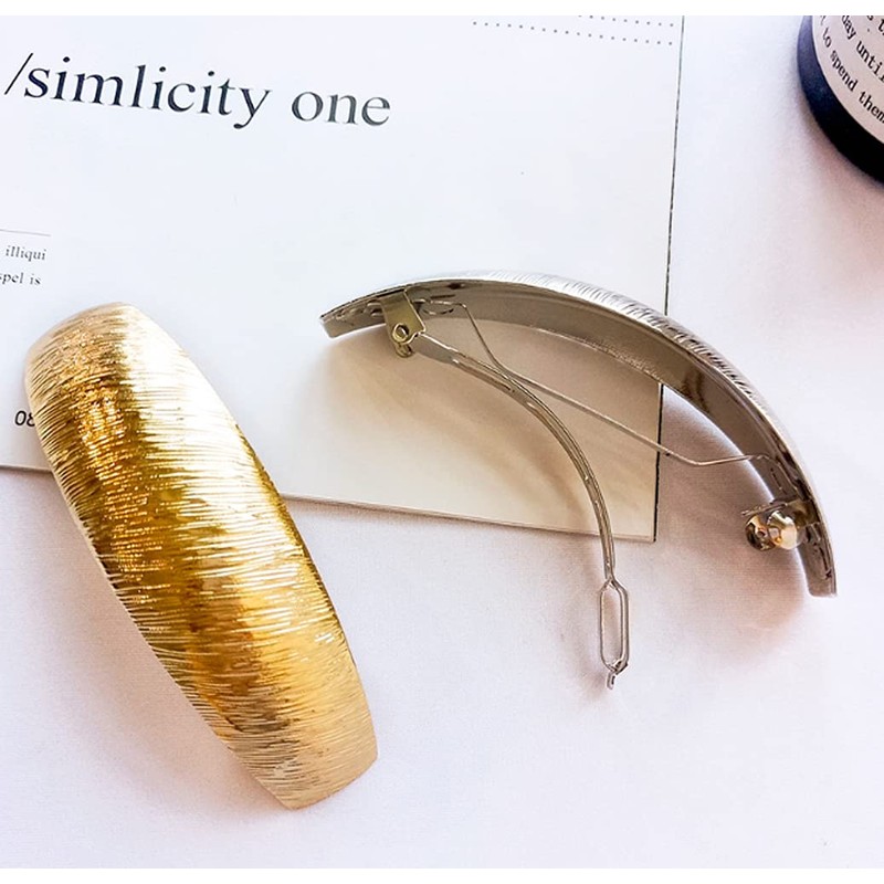2PCS French Barrette Hair Clips Simple Retro Classic Large Barrettes Hair Pins Exquisite Hair Accessories for Women Girls Curly hair Fine Hair and Medium Thick Hair (Gold+Silver Tone)