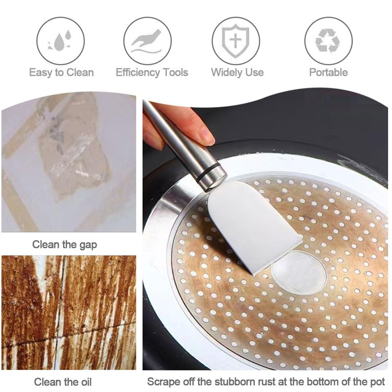 - Efficient Cleaning: The wide, angled blade effortlessly scrapes away caked-on messes, saving you time and effort during your cleaning routine.