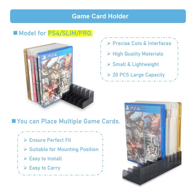 - SUITABLE FOR:This game holder rack is specially designed for SLIM/PRO gaming machines for safer storage and use without damaging the game card. The product features precise cutouts and interfaces to ensure fit, suitable for mounting locations and easy installation without damaging the machine or game cards.