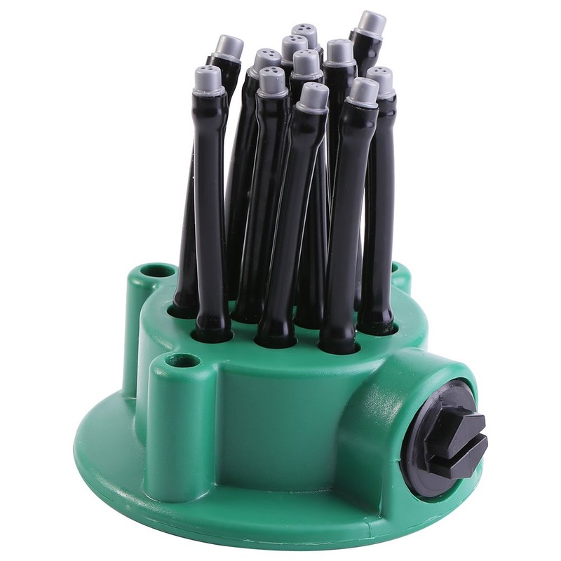 With this item, you can control the spraying of only that which you want watered. It conserves your water by not spraying streets, sidewalks, buildings, , people or cars. Flexible spray nozzles that you can set in any direction. As your garden grows, simply bend hoses to customize new watering patterns, easy to use. for flowerbeds, side yards, lawns, patios, courtyards, vegetable and gardens.