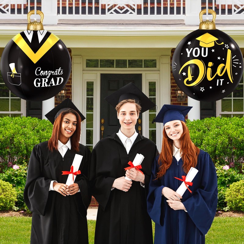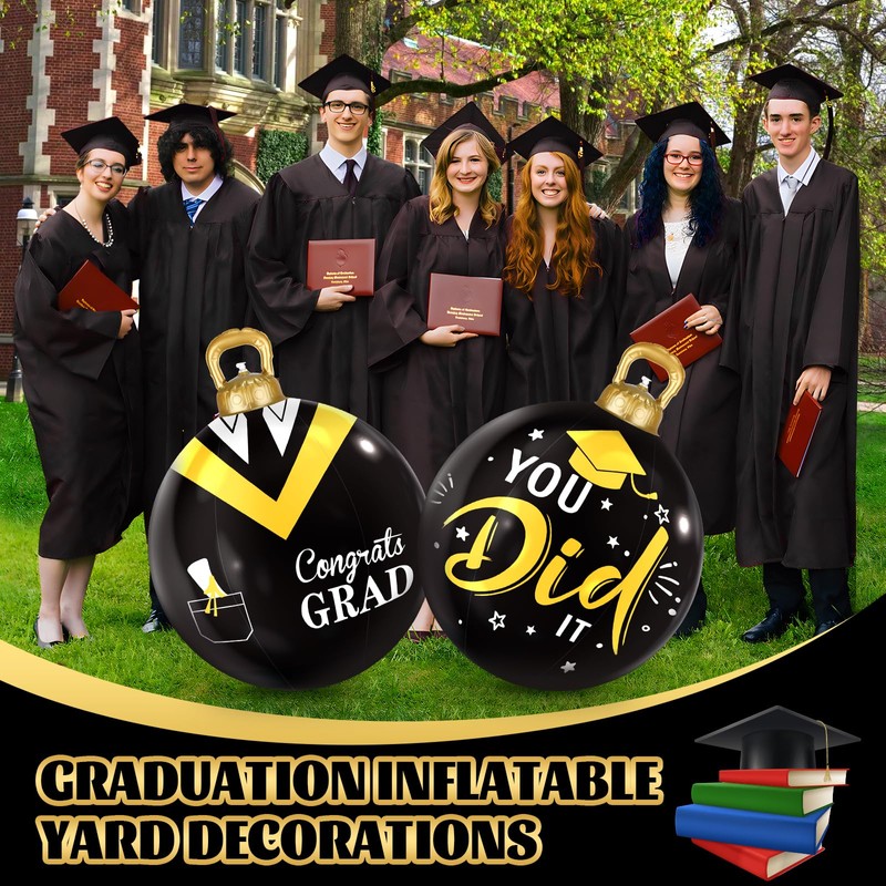- 💛【Widely Applicable】: The Outdoor graduation Lawn inflatable ball is suitable for school Prom 2024 and graduation party; you can hang it out front door or windows. You can also place them in the yard to decorated with other graduation decorations. This congrats grad decorated ball will display your graduation party decoration by creating an attractive focal point in your yard or porch.