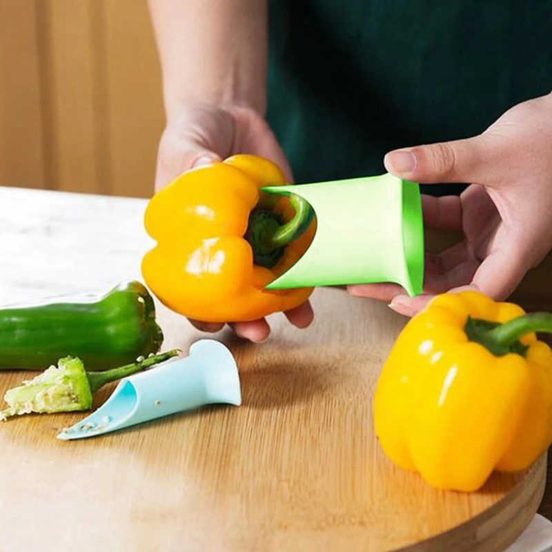 2Pcs Green Pepper Corer Tool Set - Fruit Separator Kitchen Gadget Remover