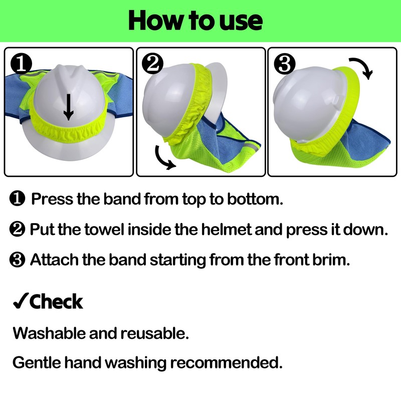 2PCS Hard Hat Sun Shade Neck Shield High Visibility Reflective Stripe Built in Sweat Towel Fits Full, Standard Brim Safety Helmets
