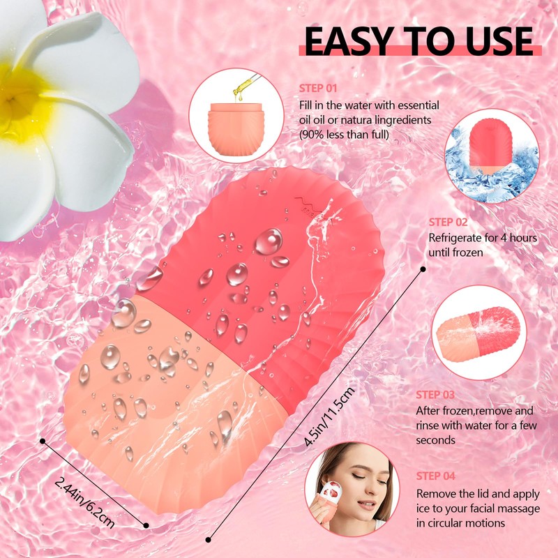 • Customize Preferences - Facial ice roller can enhance the skin care effect as per your creativity and customized formula according to your specific skin needs, such as lemonade for whitening, and coconut for improving skin. Even you can use a juicer to squeeze them into juice, then add water, essential oils, and roses to the ice tray.