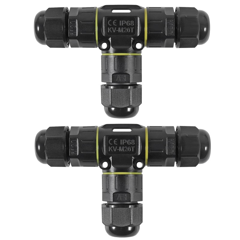 2PCS IP68 Waterproof Electrical Cable Connector, Outdoor 3 Pole 3 Pin T Shape Junction Box, M20 Wire Range(5-12mm) Suitable for Repair and Extend Power Cables