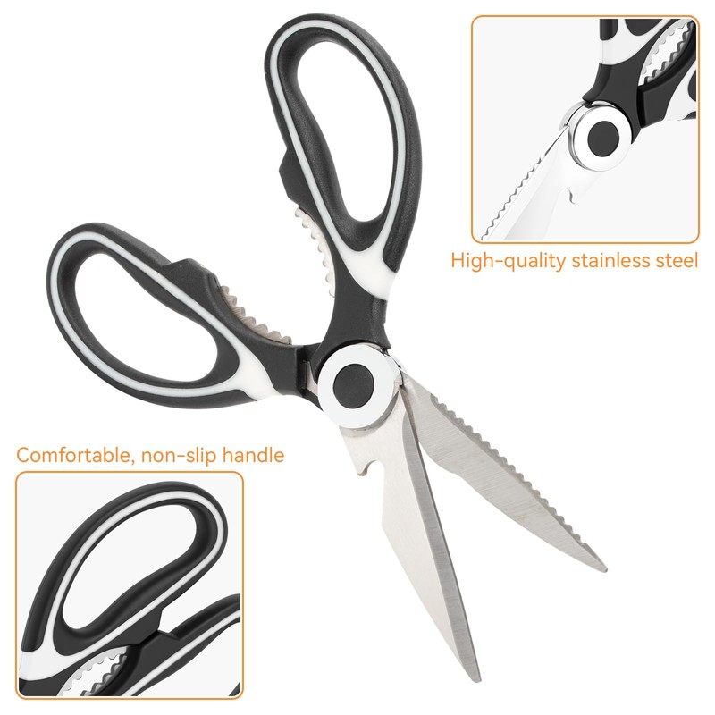- 【Premium Stainless Steel Blades】: Made with high-quality stainless steel, these sharp scissors kitchen ensure long-lasting sharpness, rust resistance, and safe contact with food.
