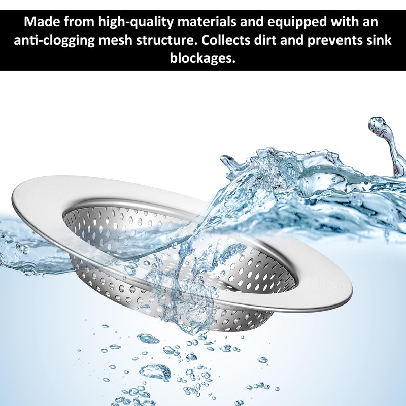 - High-Quality Materials: Our strainer and stopper are made of stainless steel, offering excellent rust resistance and long-lasting durability. The smooth edge of the strainer prevents damage to your sink, while the rubber edge of the stopper is durable and resists falling off.