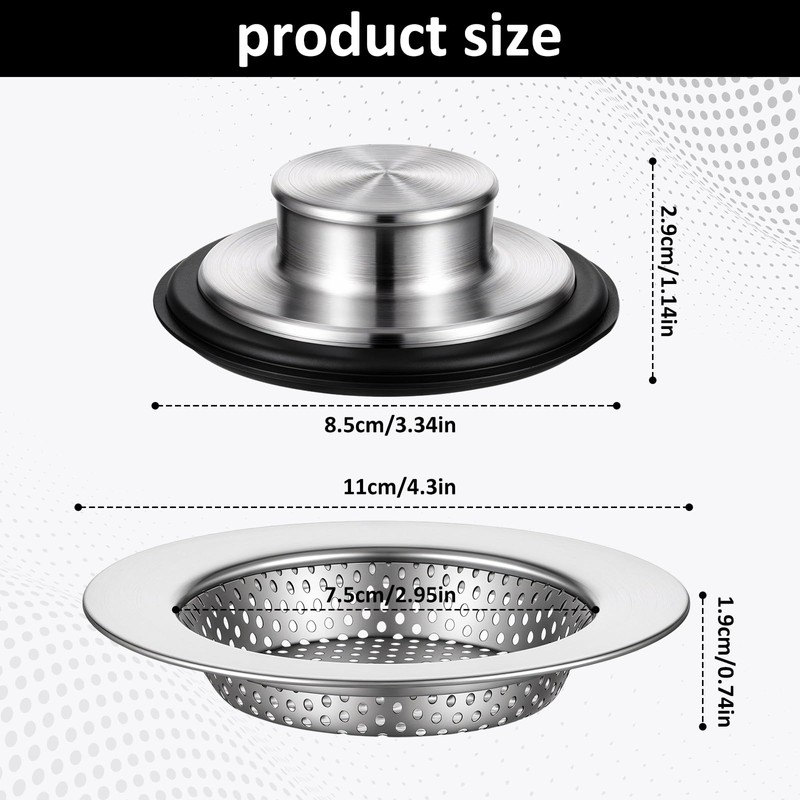 - Package Contents: This package includes one kitchen sink drain strainer and one kitchen sink stopper, essential kitchen items. Working together, they effectively trap water, kitchen waste, and food debris, keeping your sink clean and preventing clogs.