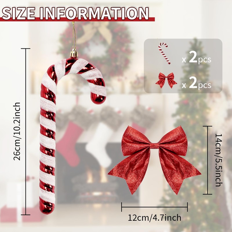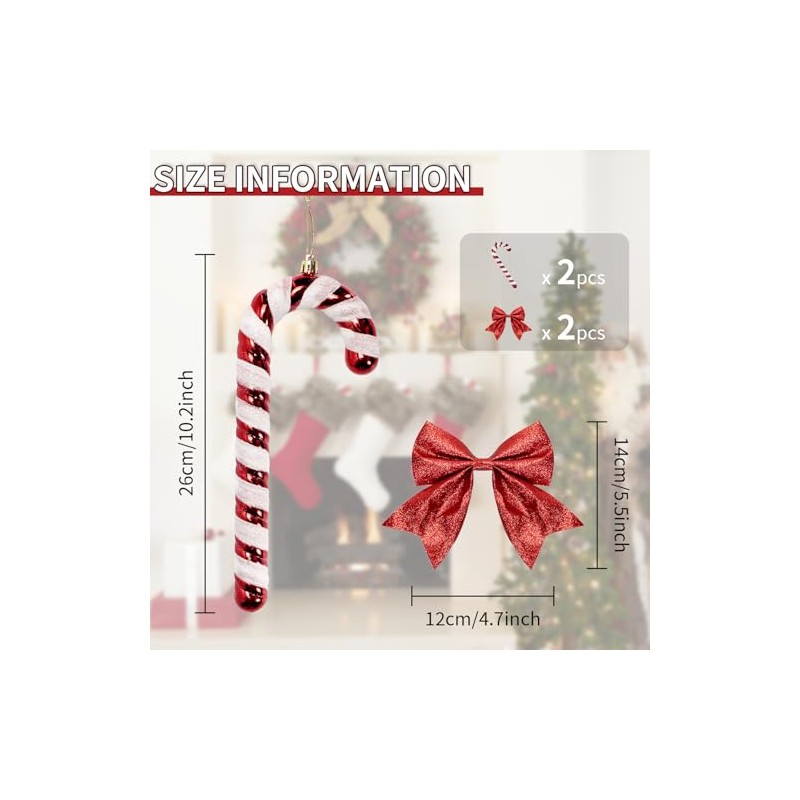 - Festive Decor: Add a touch of holiday cheer with these 2 large candy cane baubles and 2 glitter bows, perfect for Christmas decorations.
