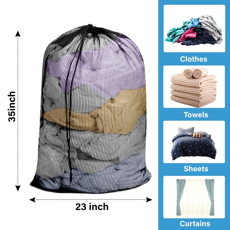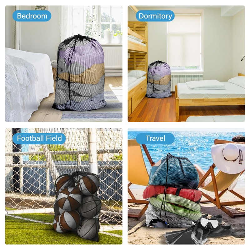 • Easy to store: The mesh laundry bag is an essential household item because it has a large capacity, strong, durable, foldable, lightweight, reusable, this travel laundry bag can also be used as a storage bag for children's beach toys, balls, gym, sports equipment, diving gear, etc.