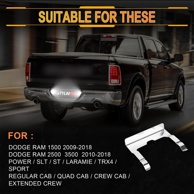 - [High Quality Material] - These 2003-2018 Dodge Ram 1500 license plate light are stainless steel retainer clips, durable and long lifespan. IP67 rated waterproof. It is not easy to rust, and it will not scratch your hands during installation.