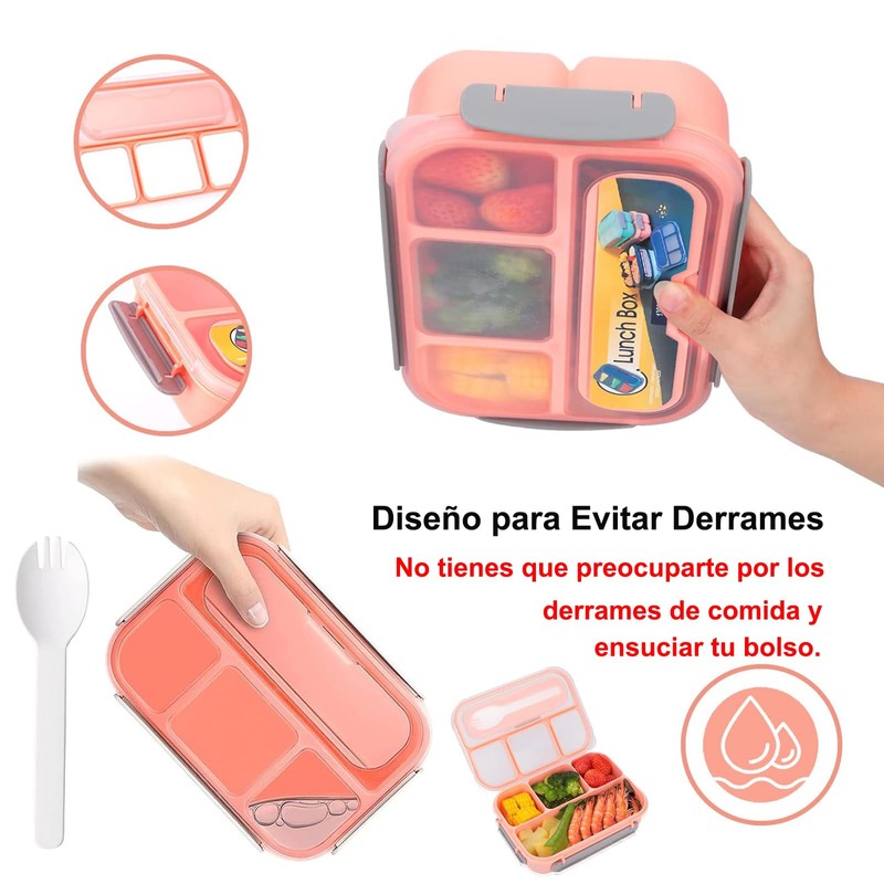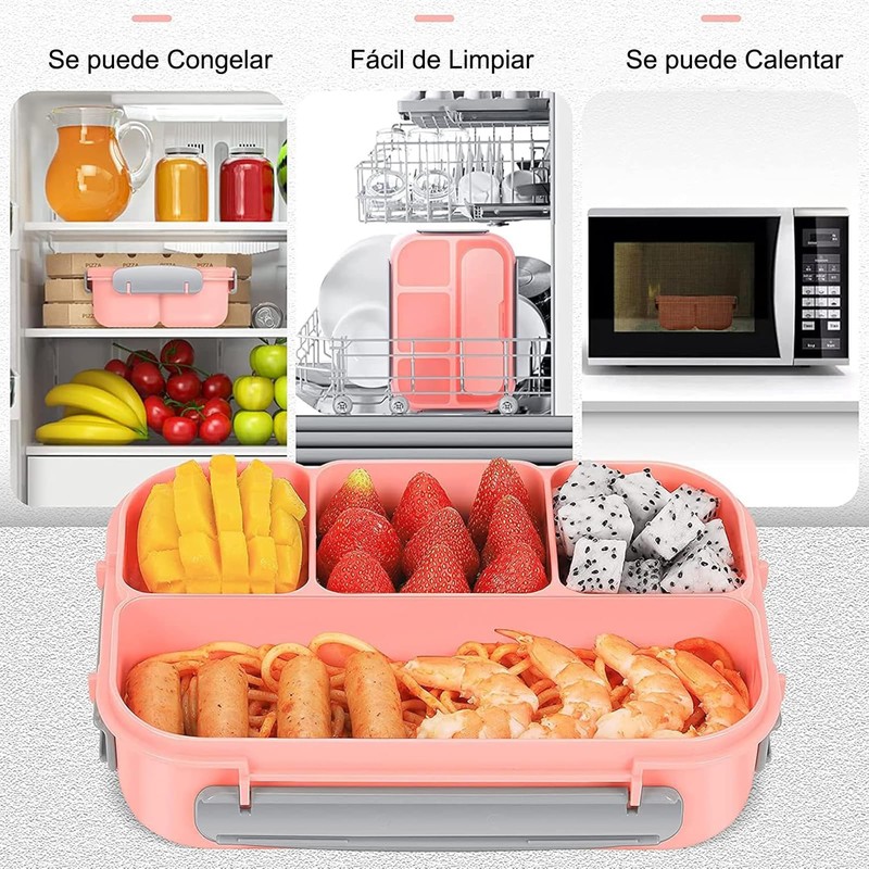 - ✔👑💎【Fiambrera Bento con Diseño a prueba de Fuga】- La tira de silicona gruesa dentro de la tapa está bien sellada y la hace 100% a prueba de fugas, en el interior hay compartimentos fijos para que no tengas que preocuparte de que se filtren entre sí. El diseño con 4 clips de bloqueo es más fácil de abrir y cerrar para, no necesita comprar una cuchara y un tenedor por separado, solo necesita abrir el recipiente de almacenamiento de vajilla que está incrustado en la tapa.
