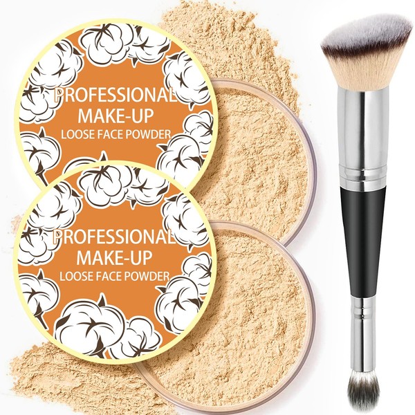 2PCS Loose Face Powder, Oil Control Minimizes Pores and Fine Lines, Loose Baking Face Setting Powder Makeup, Oil Control Soft Focus Effect Make Up, Matte Ultra Flawless Finish,8g (06# Medium)