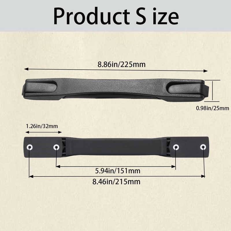 - Applicable size: The length of the luggage replacement handle is 225mm/8.86 inches, the width is 25mm/0.98 inches, and the thickness is 20mm/0.79 inches.