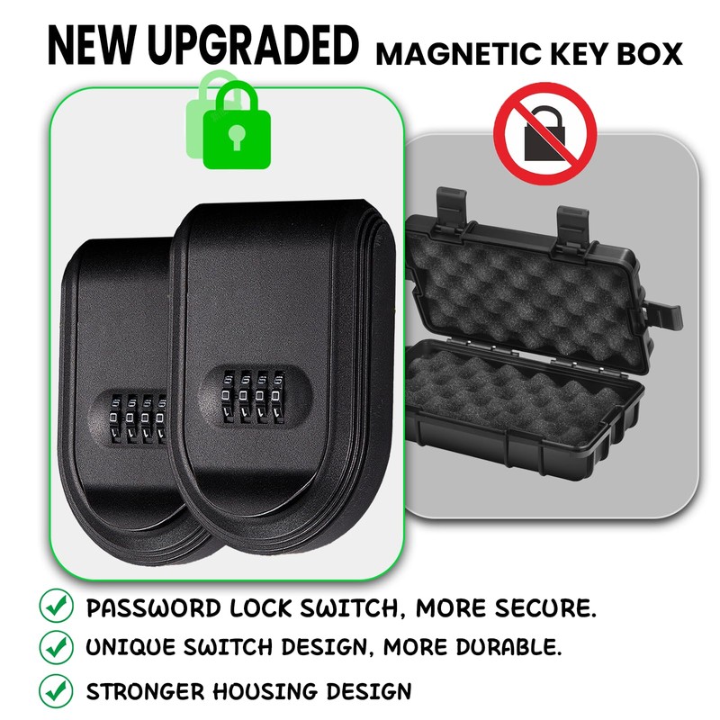 2Pcs Magnetic Key Holder Under Car,Magnetic Key Box with Combination Lock, Hide Spare Key Outside,Waterproof Magnetic Key Hider Outdoor for Hiding for Vehicles Outdoor