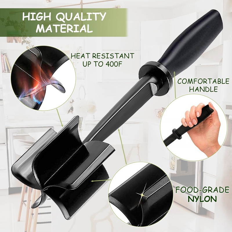 - High Quality Food Masher: Our hamburger meat chopper is made of high quality nylon. Our meat masher kitchen tool is more long lasting, nonstick and unscented. This meat shredder tool is heat resistant, ensures even cooking right in the pan.