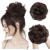 2PCS Messy Bun Hair Piece Tousled Updo with Tendrils Hair Bun Extensions Wavy Curly Hair Wrap Ponytail Hairpieces Thick Hair Scrunchies for Women Girls (Brown-Black, One size)
