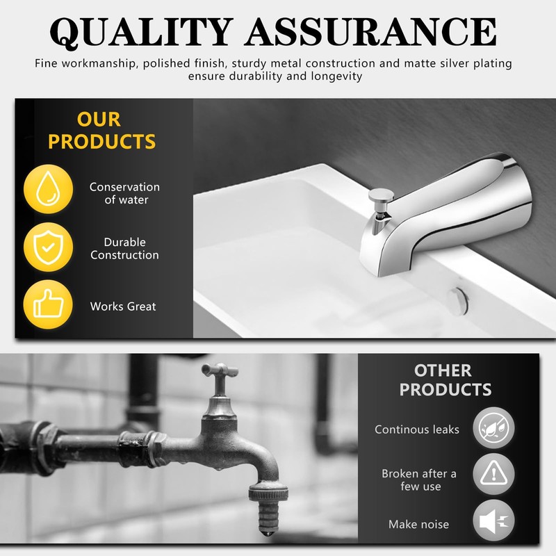 - Easy to Clean: This tub spout diverter has smooth surface, so it is not easy to dirt. If you want to clean, simply scrub this bathroom tub faucet with a wet paper. This characteristics of easy to clean, making this bathtub spout replacement can maintain good condition for a long time, to provide you with comfortable service