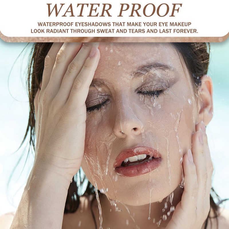 Quick-Drying & Waterproof Performance No more waiting for your makeup to set! Our fast-drying formula locks in the color within seconds, preventing smudging and fallout. Whether you're caught in the rain, sweating at the gym, or enjoying a night out, this waterproof eyeshadow resists moisture, ensuring that your eye makeup remains flawless all day long.