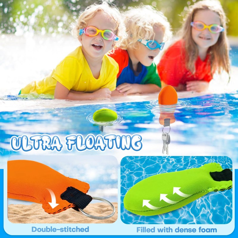 2PCS Neoprene Floating Keychain, High-Visibility Boat Key Float, Float 5 Keys, Waterproof Neoprene Foam Floating Keychain for Boat Key, No Keys Sinking for Boating, Surfing, Kayaking Water Sport