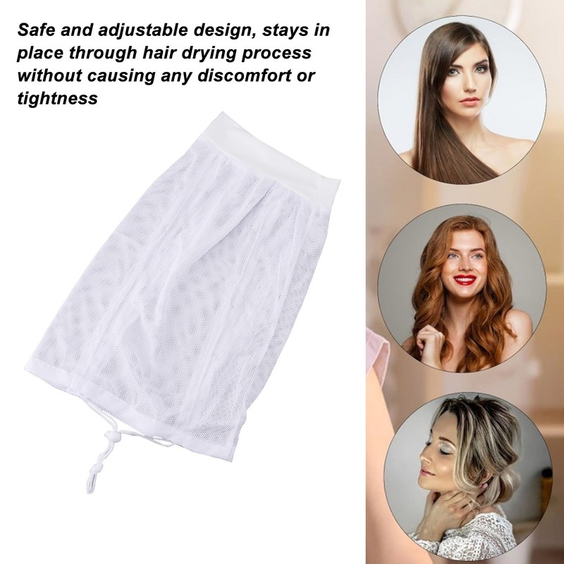 2PCS Net Plopping Cap Multifunctional Adjustable Drawstring Curly Hair Drying Net Bonnet for Home Hotel White