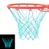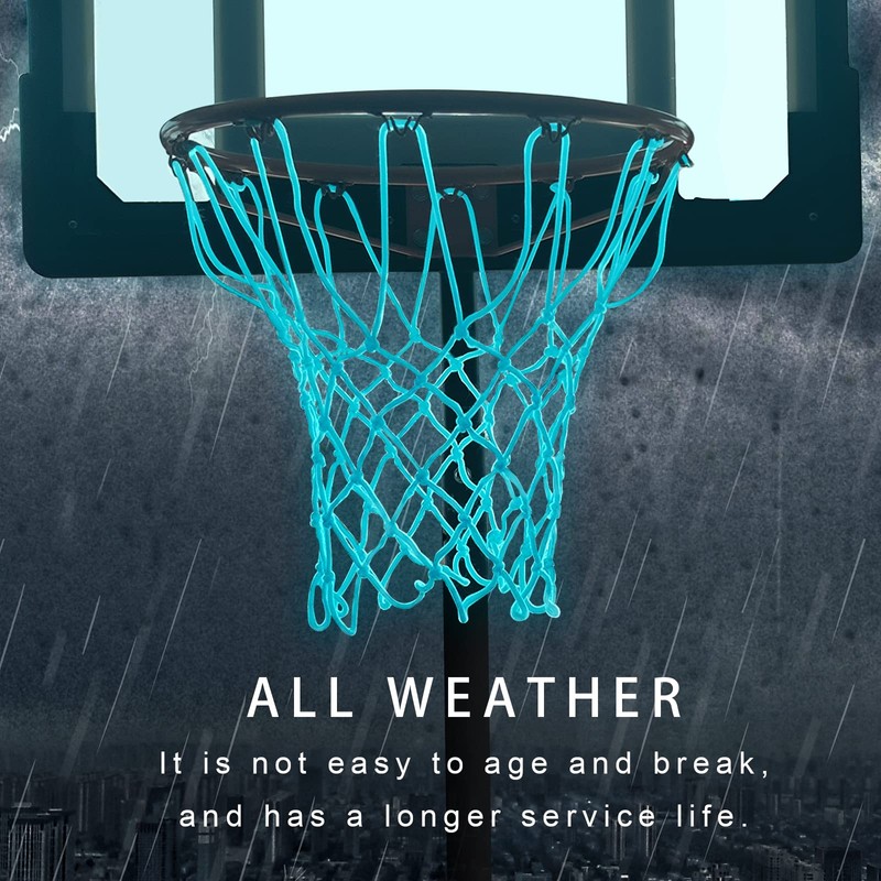 - glow in the dark basketball net: two sky blue basketball nets, brand new color, the whole basketball net can emit a beautiful blue light at night, more eye-catching, and can make your basketball game more interesting, also at night Have fun with basketball! ! !