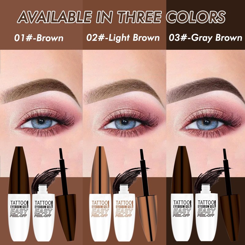 - 【3 Shades for Personalized Beauty】Our peel-off tattoo eyebrow gel set includes three versatile shades: Brown, Light Brown and Gray Brown. Select the perfect hue to complement your skin tone and hair color, enhancing your natural features. Each shade delivers rich, natural-looking color for beautifully enhanced brows.
