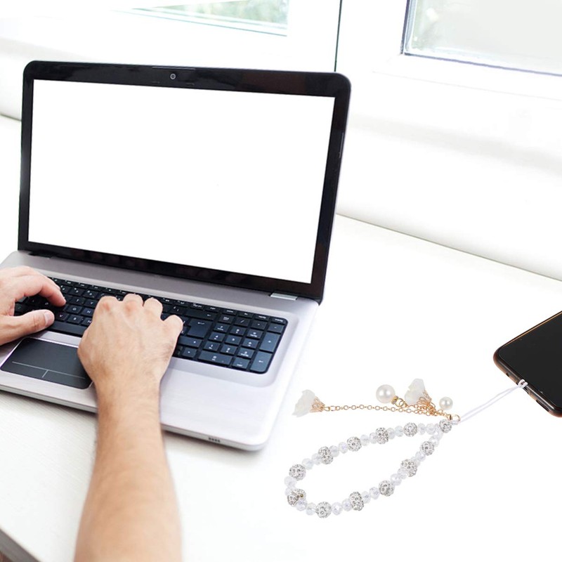 2PCS Phone Wrist Strap, Flower Cell Phone Strap Cell Phone Lanyard Phone Chain String Crystal Beaded Phone Charm Strap