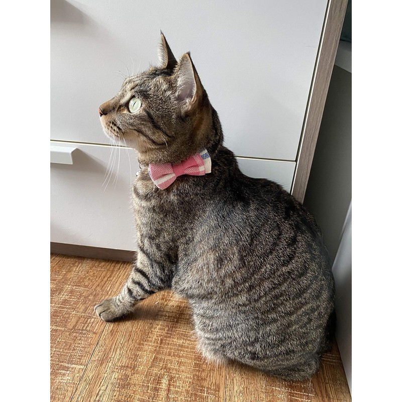 - Movable Bow Tie: Design with pink plaid pink bling style, cute and fashionable. Durable polyester fabric, soft and comfortable.Attached to the collar with 2 elastic bands, so it is movable.