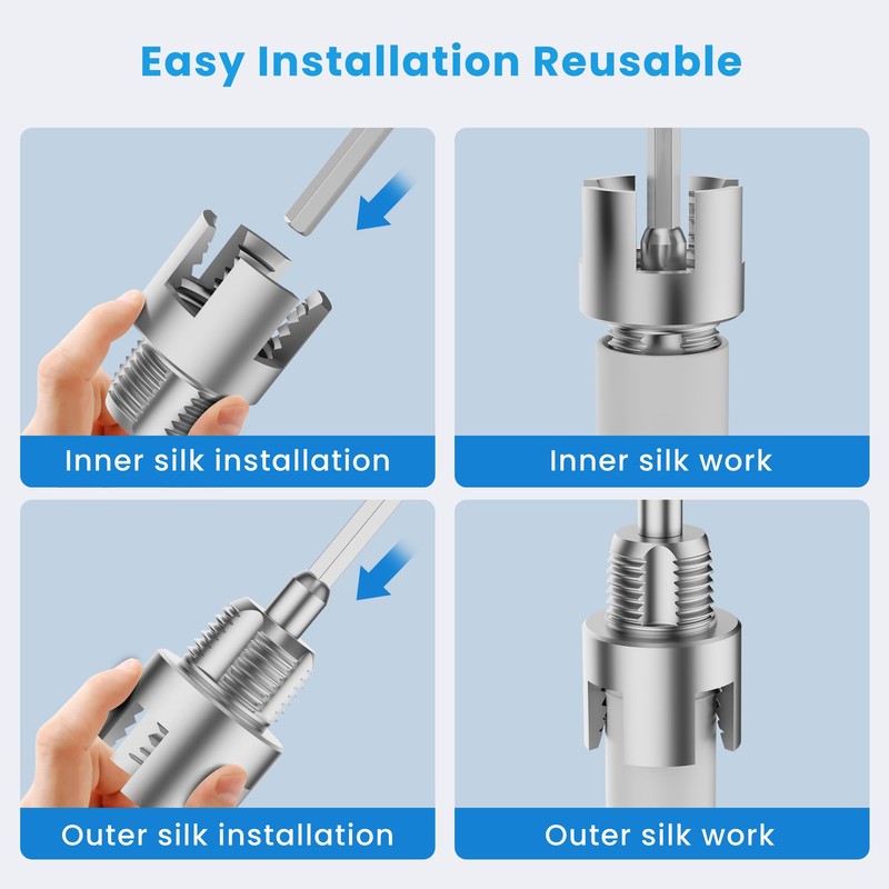 2 in 1 integrated internal & external pipe threading tool, special manufacturing process, reaching the hardness of industrial-grade tools and leak-proof precision. plastic pipe threading tool for ideal for plumbing PPR、PVC、PLASTIC or MPP, HVAC, pvc pipe threader set 1/2" and 3/4" npt set, easy to disassemble and use quickly, usually can be switched between each other within 10 seconds. pipe threading tool is industrial and family maintenance best choice