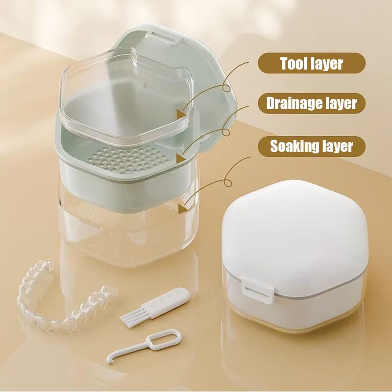 - 🦷Multi - Functional Organizing: The Retainer Case Denture Case provides a full - featured partial storage room with a tool layer for small items, a drainage layer for soaking, and a storage layer for tools like cleaning brushes, teeth floss sticks, and other small tools.
