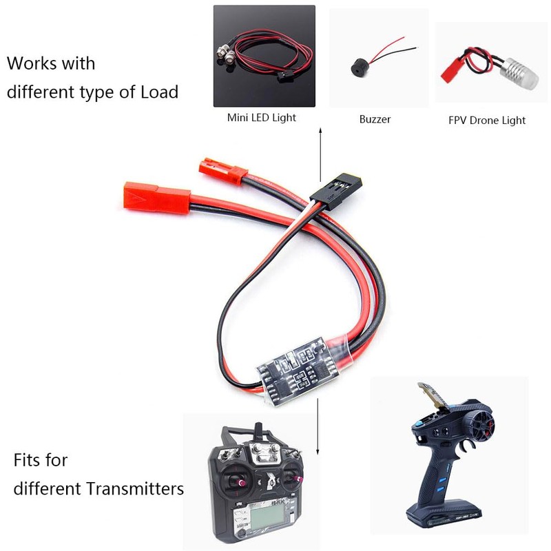 - Widely Used: This RC electronic switch is compatible for RC Cars, RC Trucks, RC Airplanes, RC Boats, RC Helicopter, RC Quadcopter and RC Drones.