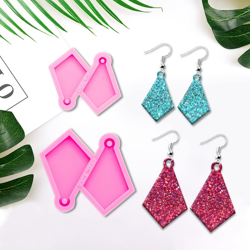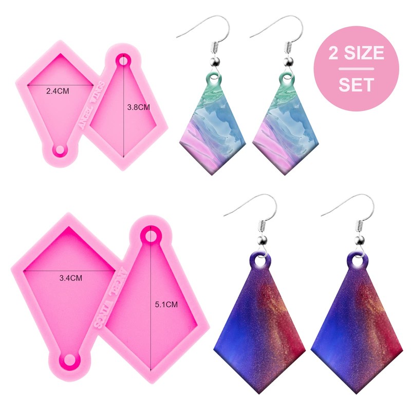2Pcs Resin Molds Silicone Earring Molds for Jewelry Making, Silicone Molds for Resin DIY Woman Girl Earring, Rhombus Mold Epoxy Resin Molds, Shiny Glossy Jewellery Epoxy Resin Casting Molds, Size S M