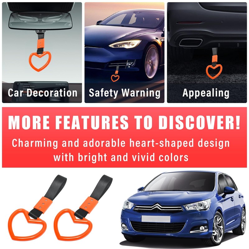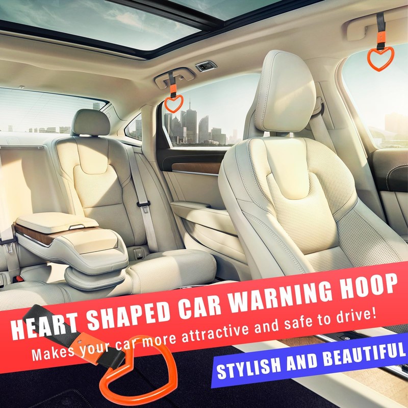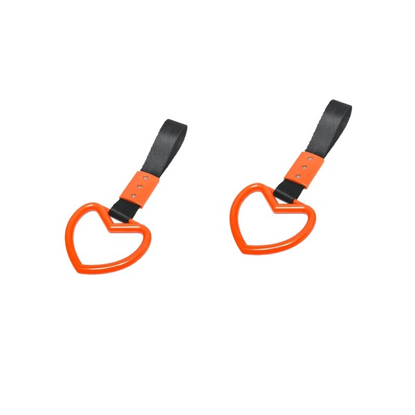 2PCS Ring Heart Shaped Car Hand Straps, Cute Rear Bumper Warning Rings Drift, Warning Loops for Car Interior Decor (Orange & Black)