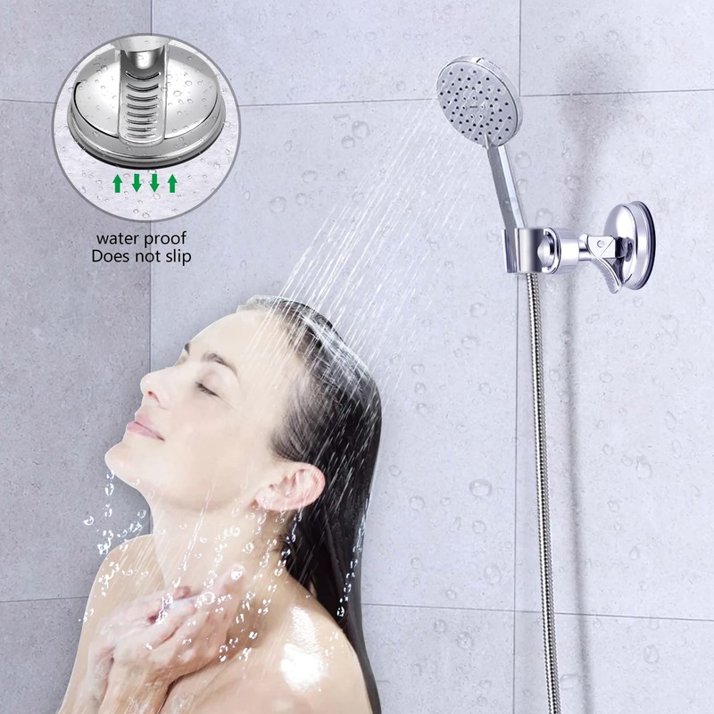 - 【Easy to Install and Re-Position】:No drilling, no tools, no glues,simply press down or move up the lever of the suction cup by hands to finish installation or removal,you can locate shower head at any height, convenient for elderly, kids or anyone who can't reach the shower head