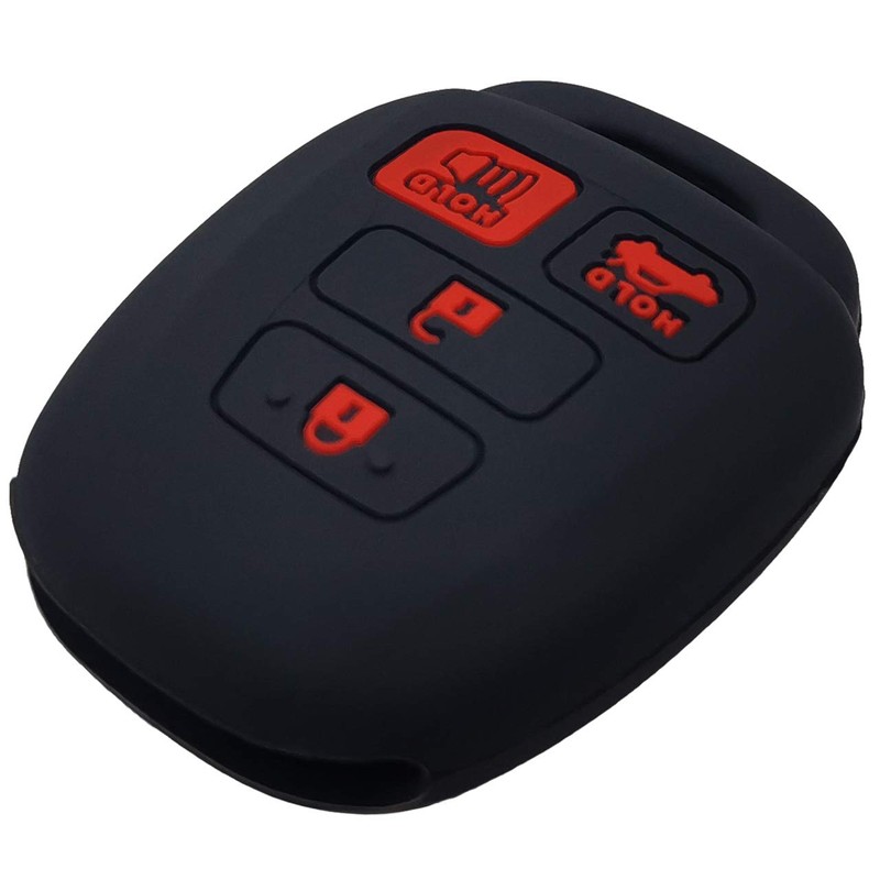 2Pcs Silicone 4 Buttons Key Fob Cover Remote Case Keyless Protector Compatible with Toyota Corolla Avalon Camry Highlander RAV4 Venza Yaris Scion FR-S tC HYQ12BDM HYQ12BEL HYQ12BDP (Black & Hot Pink)