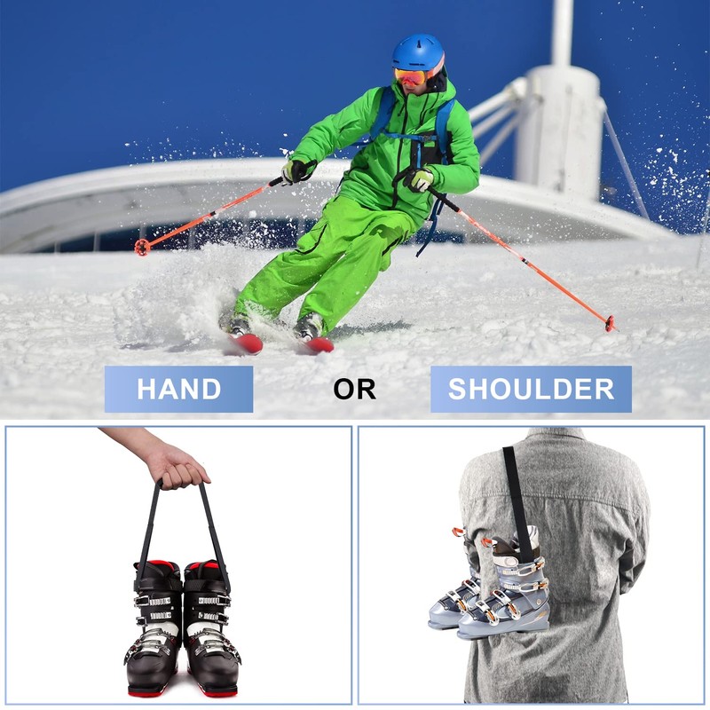 - Easy to Use: Just slide the end of ski shoulder strap into any buckle or clip of ski boots, then fix it firmly. They can bring comfortable using experience.