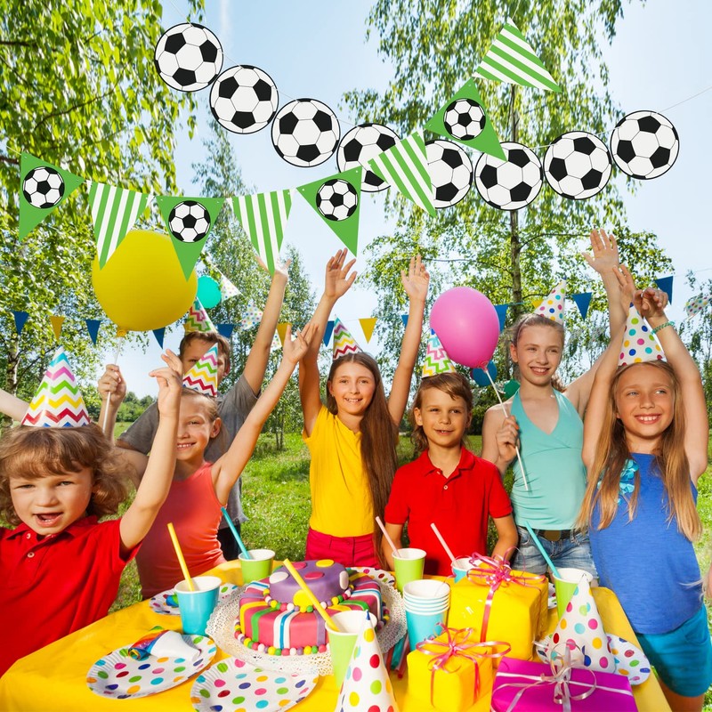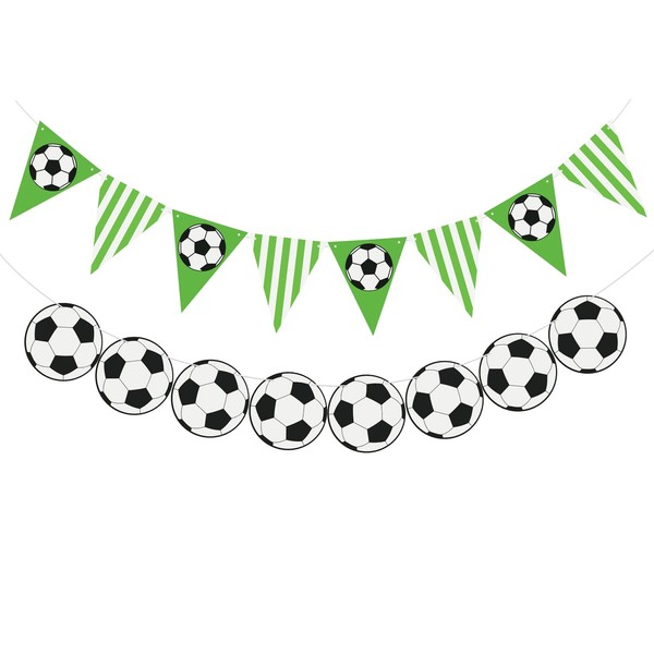 2PCS Soccer Party Banners - Soccer Party Supplies Sports / Football / Soccer Themed First Birthday Party Decorations Football Pattern Banners Soccer Birthday Garland for Sports Party Supplies