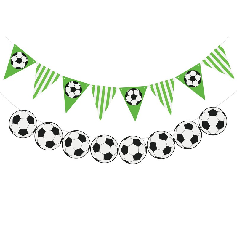 - Package Including - 1 soccer ball pattern banner and 1 soccer ball triangle flags