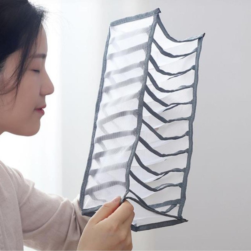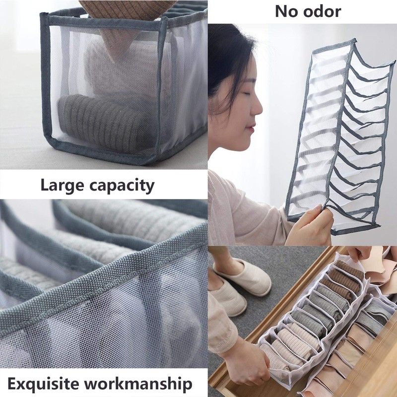 2pcs Socks Storage Compartment Box Foldable Silk Stockings or Nylon Stockings Storage Organiser Drawer for Divider Foldable Panties Socks Tie Organizer Gray 11 Cell