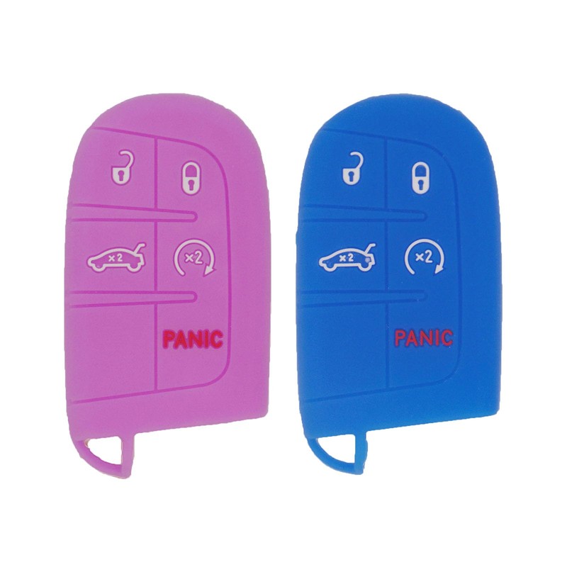 2pcs Soft Silicone Car Key Fob Cover Case Protector Shell for Jeep Grand Cherokee Renegade Compass Dodge Challenger Charger Dart Durango Journey Chrysler 200 300 Keyless Entry Key Fob, Blue&Purple
