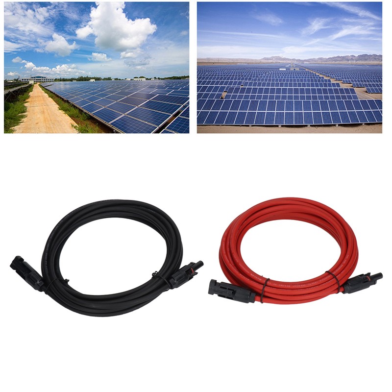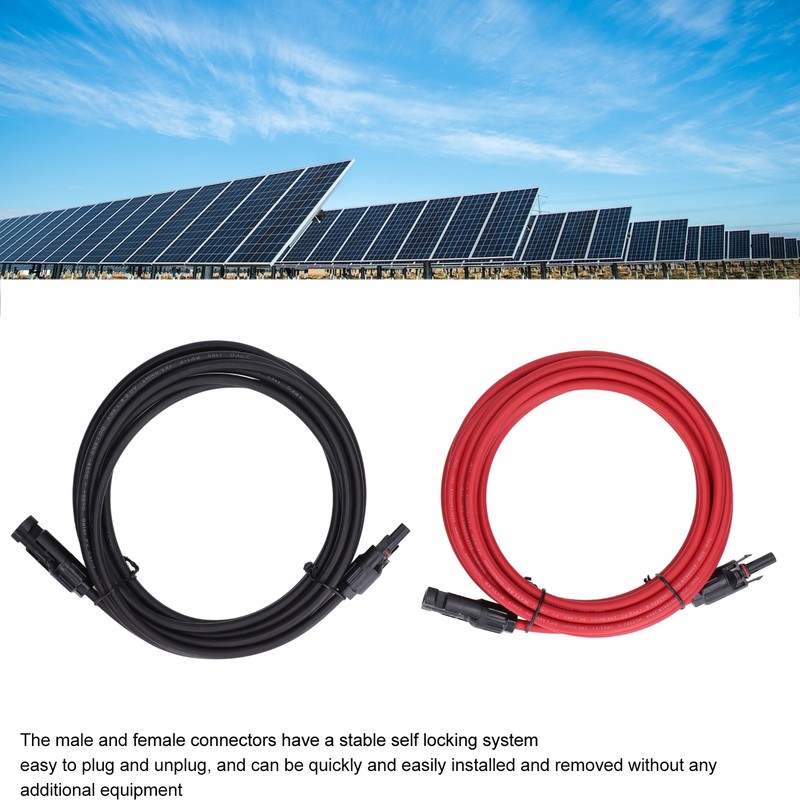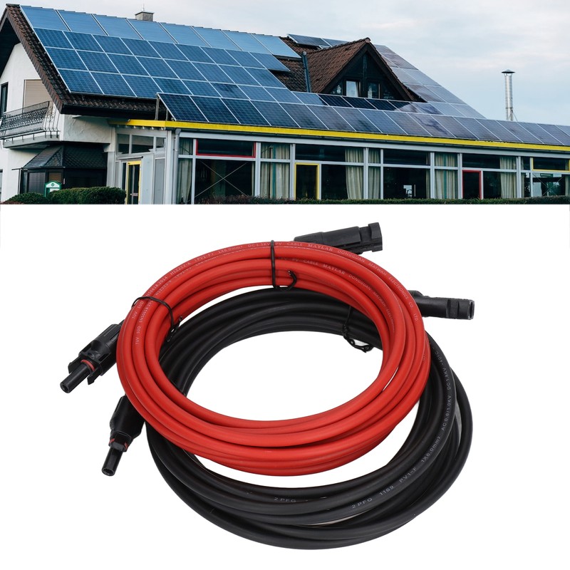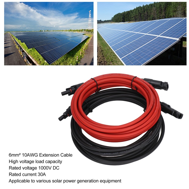 2Pcs Solar Panel Extension Cable 10AWG 6mm² Solar Extension Cable Rated Voltage 1000V DC Red Black 5m / 16.4ft