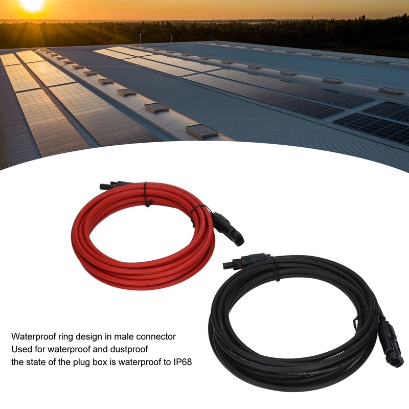 1、Insulation and Flame Retardant Shell: The shell adopts PPO insulation and flame retardant material, heat and corrosion resistance, oxidation resistance, UV resistance and high and low temperature resistance, can be used in harsh environment. 2、Male and Female Connectors: The male and female connectors have a stable self locking system, easy to plug and unplug, and can be quickly and easily installed and removed without any additional equipment. 3、6mm² 10AWG Extension Cable: Extension cord specification 6mm² (AWG10), high voltage load capacity, rated voltage 1000V DC, rated current 30A, suitable for all kinds of solar power generation equipment. 4、Waterproof Ring in Male Connector: The waterproof ring in the male connector is designed to be waterproof and dustproof, and the state of the plug box is waterproof to IP68. 5、Good Conductivity: The solar panel extension wire is made of tinned conductive copper material to ensure good conductivity.