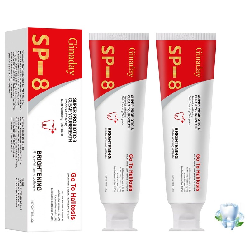 2Pcs SP8 Toothpaste,SP-8 Probiotic Whitening Toothpaste - Enhanced Formula with 8 Probiotics for Teeth Whitening and Gum Health and Enamel Safe.