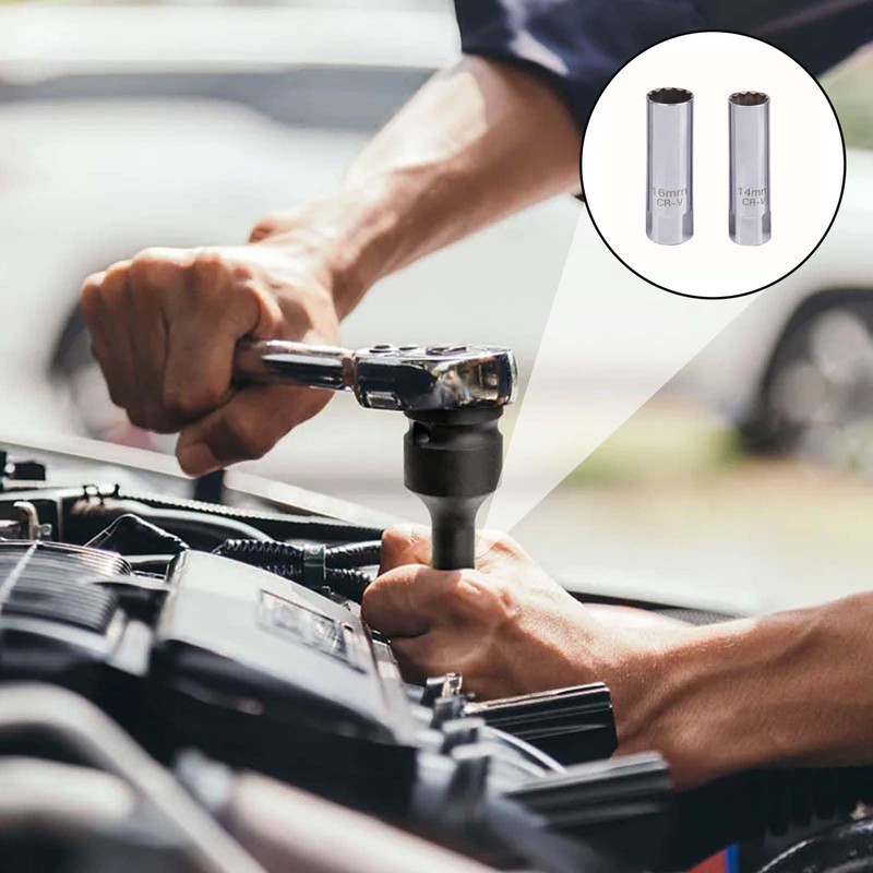 2pcs Spark Plug Socket Set, Strong 16mm Spark Plug Socket and 14mm Spark Plug Socket for Effortless Engine Maintenance, Durable, Precision Spark Plug Socket