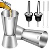 2Pcs Spirit Measures 25ml 50ml, Cocktail Double Jigger Stainless Steel Shot Measure Gin Bar Craft Dual Spirit Measure Cup with Pourers and Brushes for Drinks Alcohol