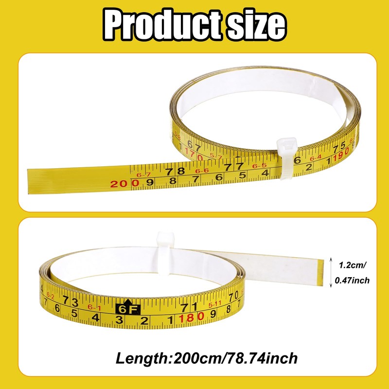 - Package Includes: You will receive 2 pieces of yellow steel adhesive measuring tape, ensuring a right -to-left read for seamless and intuitive measurement. Each adhesive ruler tape measures 200 cm/78 inches in length and 1.2 cm/0.47 inch in width.